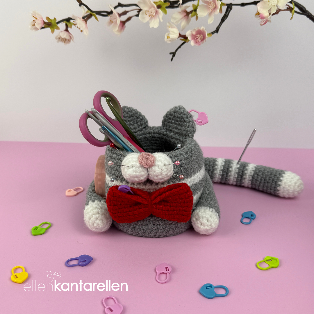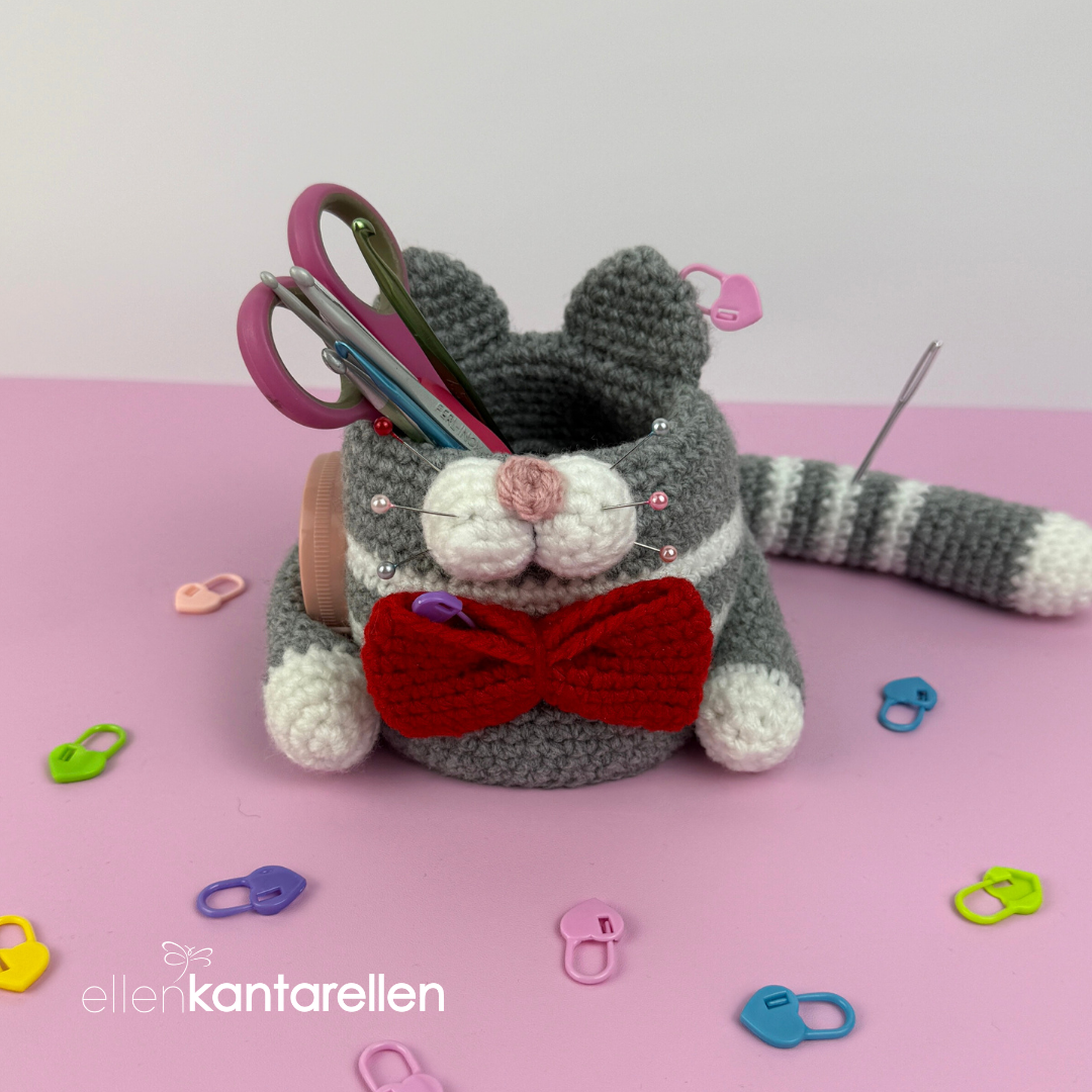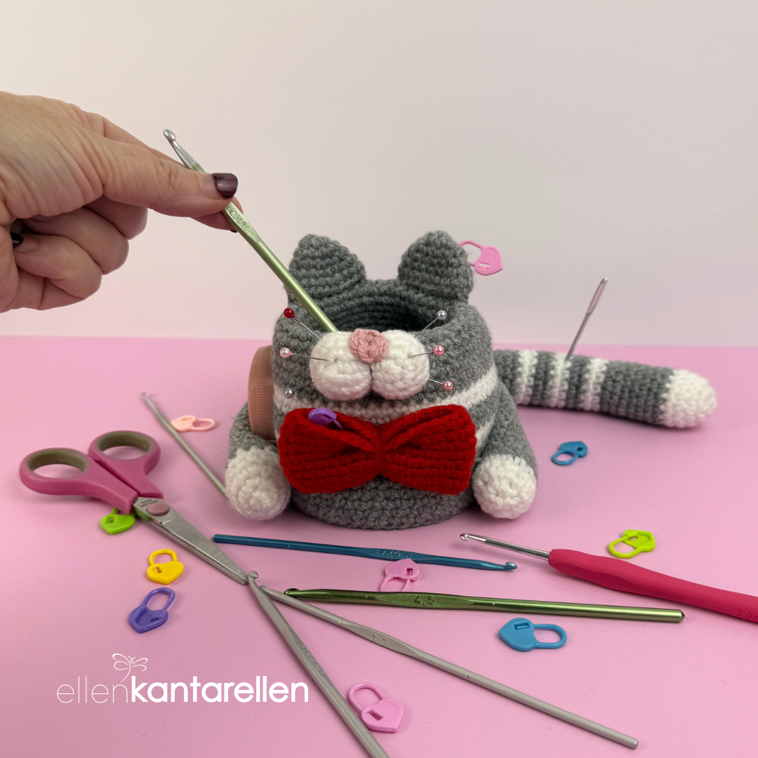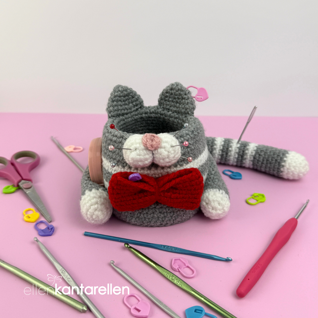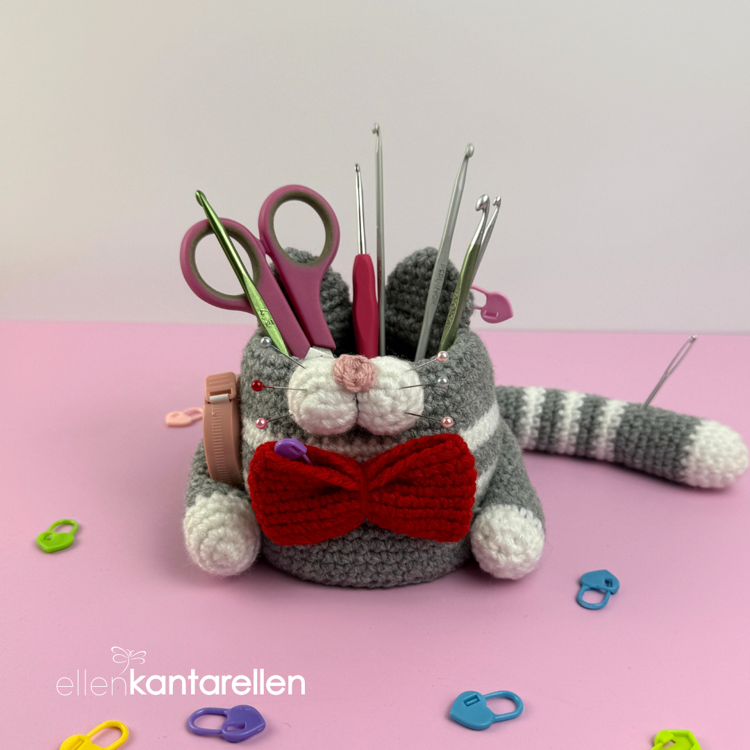 🌸This is a digital crochet pattern (PDF), not a finished item. Adorable crochet hook Cat Organizer pattern. The one thing you need for your crochet hook/markers/scissors/measuring tape etc.  Approximately 10.5 cm/4.5″ x 12.5 cm/5″!